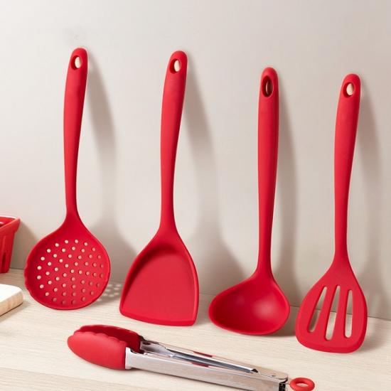 Ce groupe de ensemble d'ustensiles de cuisine en silicone , sûr, non toxique, texture douce ne blesse pas le pot, résistance aux hautes températures, utilisation à long terme n'est pas facile à déformer, il existe une variété d'ustensiles, rangement pratique, n'occupe pas d'espace.