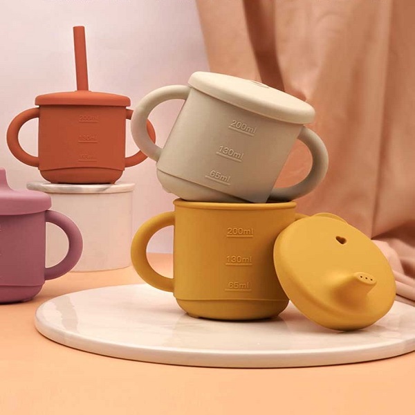La tasse à boire en silicone pour bébé est 100% silicone de qualité alimentaire, sûr, sans odeur, sans BPA, bébé peut boire en toute tranquillité