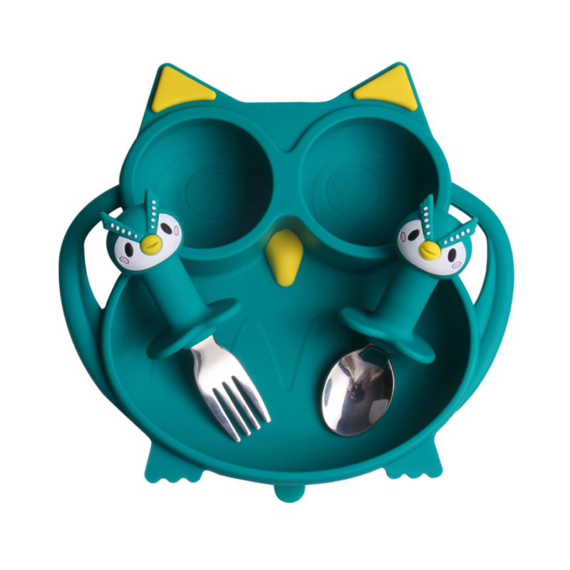 Assiette en silicone pour bébé, assiette hibou pour nourrir bébé
